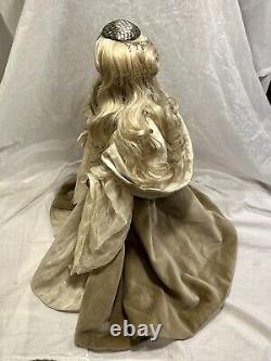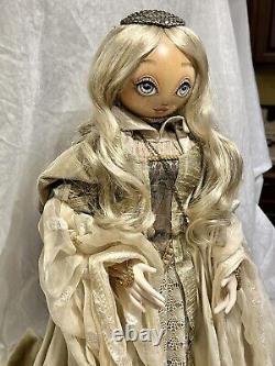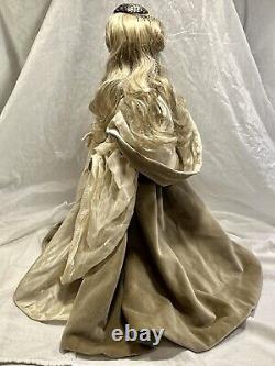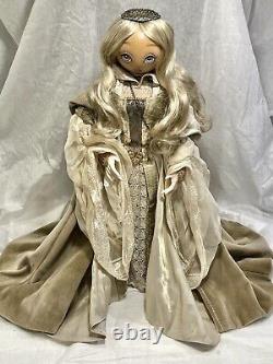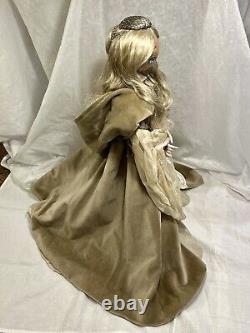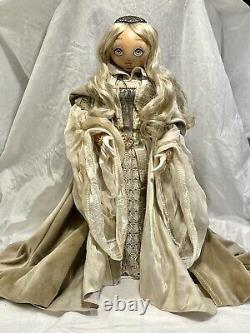 This Winter princess is dazzling! Her hand-painted eyes and elegant outfit are sure to captivate. She comes from the very exclusive Fantasy Series of the Xenis Collection. This exquisite collection is a limited edition and consists of beautiful dolls with various outfits and themes. Outfit which consists of two gowns.