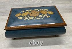 Stunning handmade music box with exotic wood inlays. 5.5"x3.5"x2.25. This beautiful musical box is a true work of art, handcrafted in Italy using natural wood and featuring intricate inlay designs.
