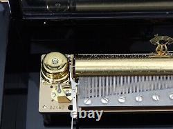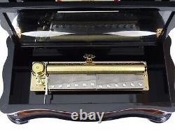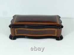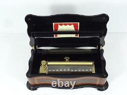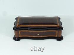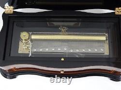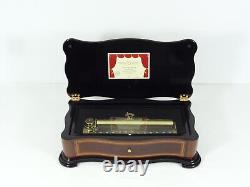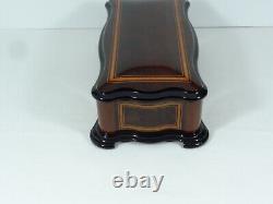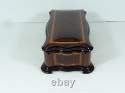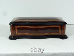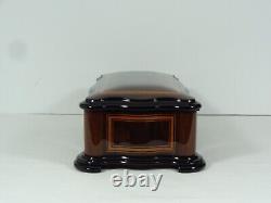 W/ Burr and Rosewood Banding Case. This music box is in excellent condition and looks new to me. This unit has the most desirable 144-note movement which sounds amazing. The unit plays 3 Gershwin tunes. The case has a curved feature which makes it a little more expensive and unique.