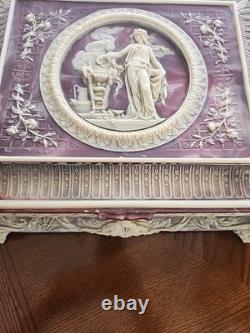 The case is handcrafted in Incolay Garnet Stone featuring a beautiful cameo design. 3 songs 72 Notes Ludwig van Beethovan. Very rare and unique piece. The box is missing the key for he lock.