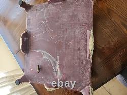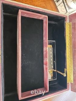The plexiglass movement cover is broken. I made a replacement with plexiglass to protect the movement. The interior tray has a small crack but not noticeable. Measurements are approximately: 15" x 13"x 6 1/2. Please address any questions or concerns before purchasing.