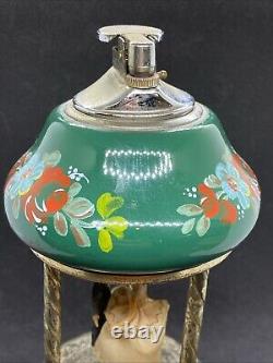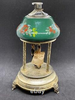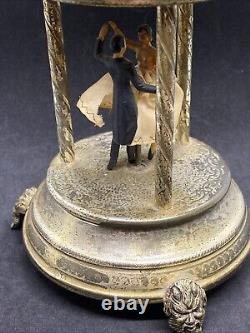 This Reuge Dancing Ballerina Lighter Music Box is an exquisite collectible manufactured in Italy. The music box features a dancing ballerina and also functions as a lighter. It is unpolished but in working condition, showcasing the intricate craftsmanship and attention to detail that Reuge is known for. This unique piece would make a charming addition to any collection of decorative collectibles, especially for those who appreciate vintage items with a touch of music and movement. The condition of this piece is as follows.