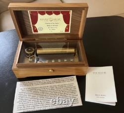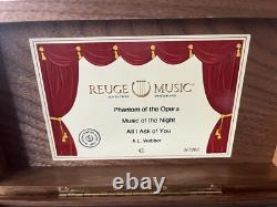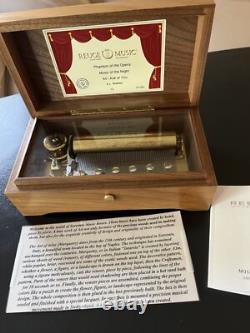 The Reuge Music Box: Phantom of the Opera is a stunning and intricate music box manufactured in Switzerland. This one-of-a-kind collectible features a beautifully crafted design inspired by the classic opera, The Phantom of the Opera. The Reuge brand is known for its high-quality and meticulously detailed music boxes, making this piece a standout addition to any collector's display. With its timeless appeal and exquisite craftsmanship, this music box is sure to captivate and delight any opera enthusiast or collector of decorative pieces. Music Box Dimensions: 8"x4.5"x3.
