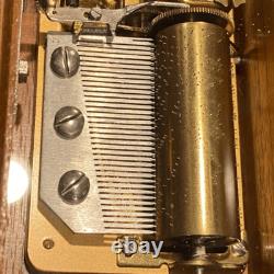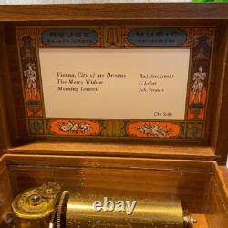 Vintage Reuge Cylinder 3/36 Note Swiss Music Box Vienna, Rud. Sieczynsky City of my Dreams, F. Lehar The Merry Widow Morning Leaves, Joh. Strauss Works perfectly with unbelievable tone. Many manhours are required to make such small instruments.