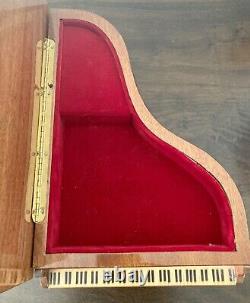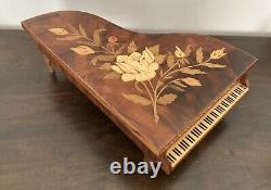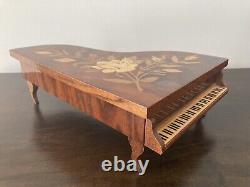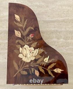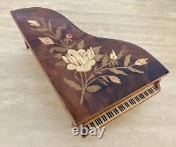 VTG Reuge Grand Piano Music Jewelry Box ITALY Floral Inlay'Lady' (VIDEO). Vintage wood Grand Piano musical jewelry box with beautiful floral inlay. Reuge Swiss musical movement - plays'Lady' (see Video).