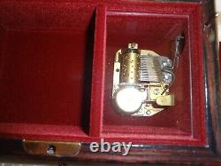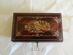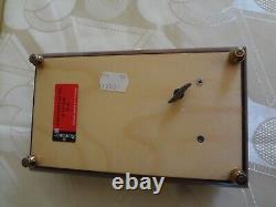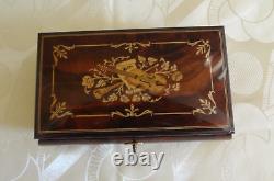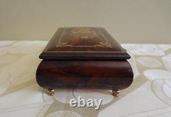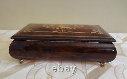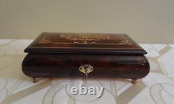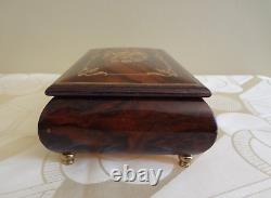 VTG Reuge Swiss Musical Italian Inlaid Brown Wood Box Plays The Blue Danube