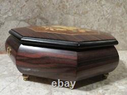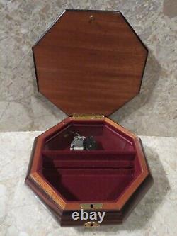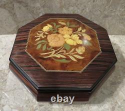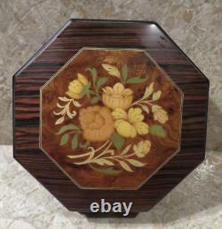 VTG Sorrento Reuge Octogonal Inlaid Floral Music Box Santa Lucia Swiss Italy